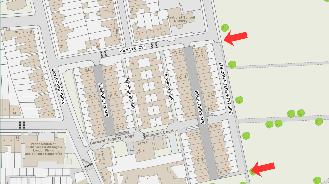 In response to concerns about pedestrian safety along London Fields West Side, we are proposing to install staggered barriers at both ends of London Fields West Side, adjacent to Rochford Walk.