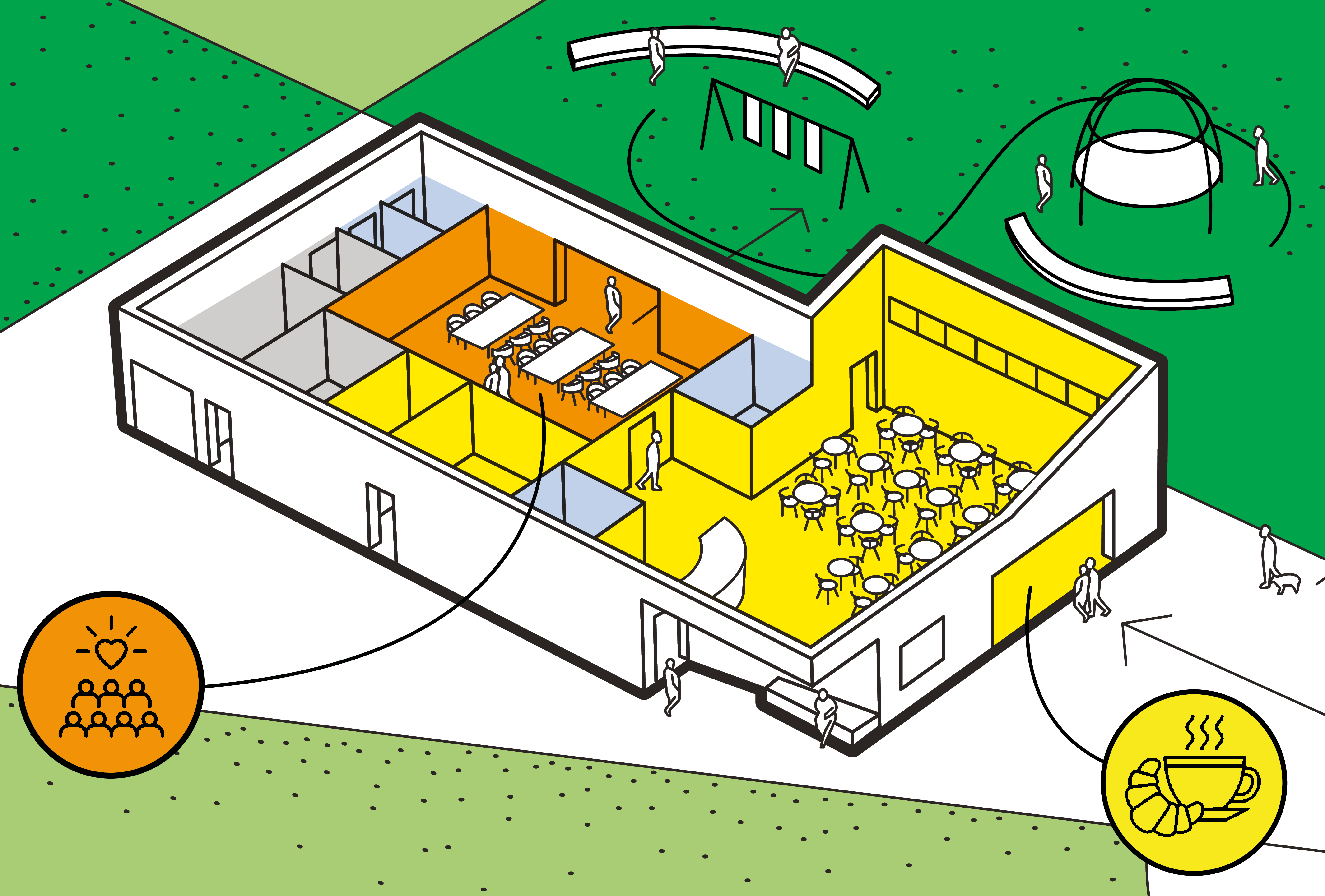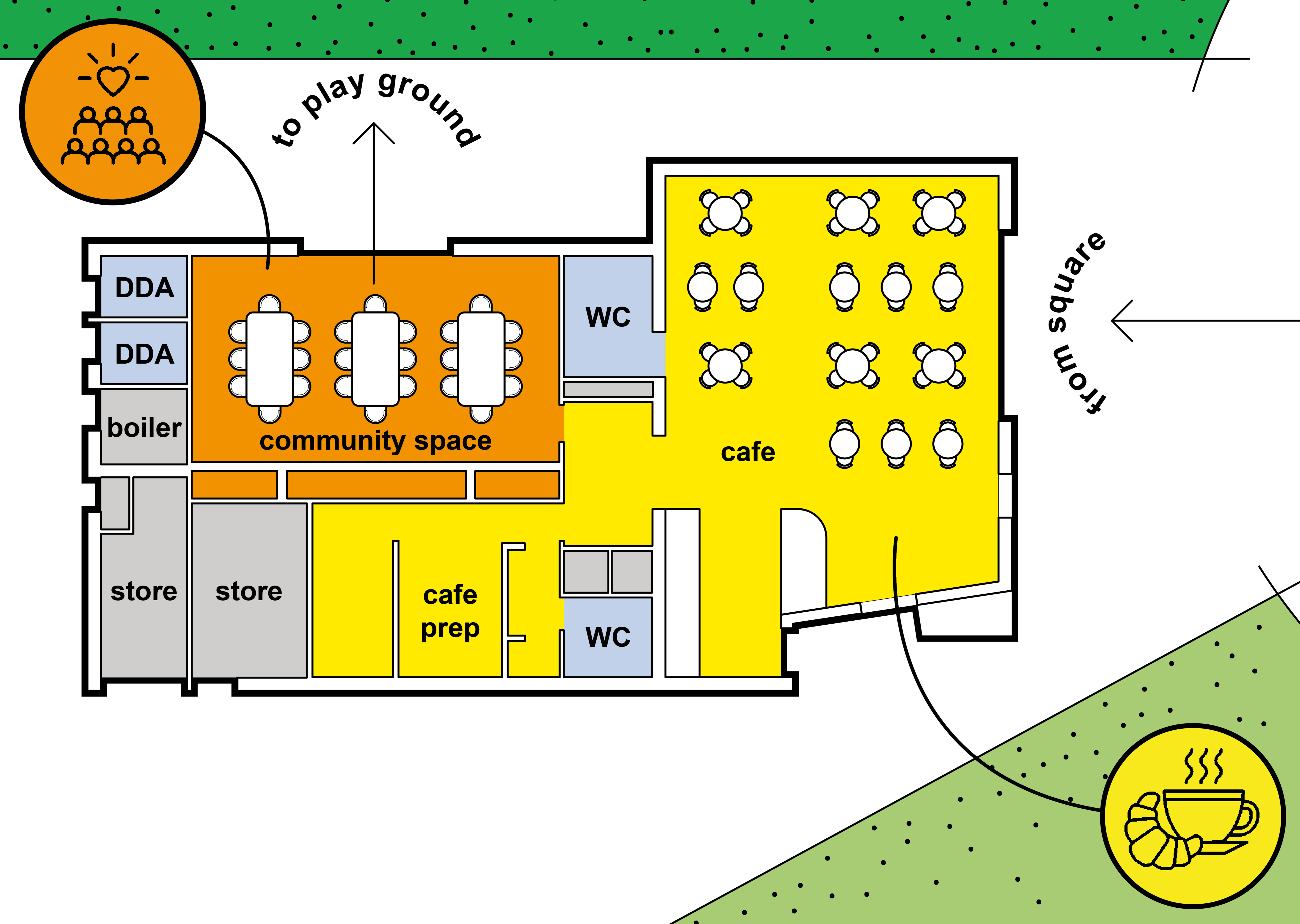 Create a new café that opens out onto the park, including a hatch to serve passersby