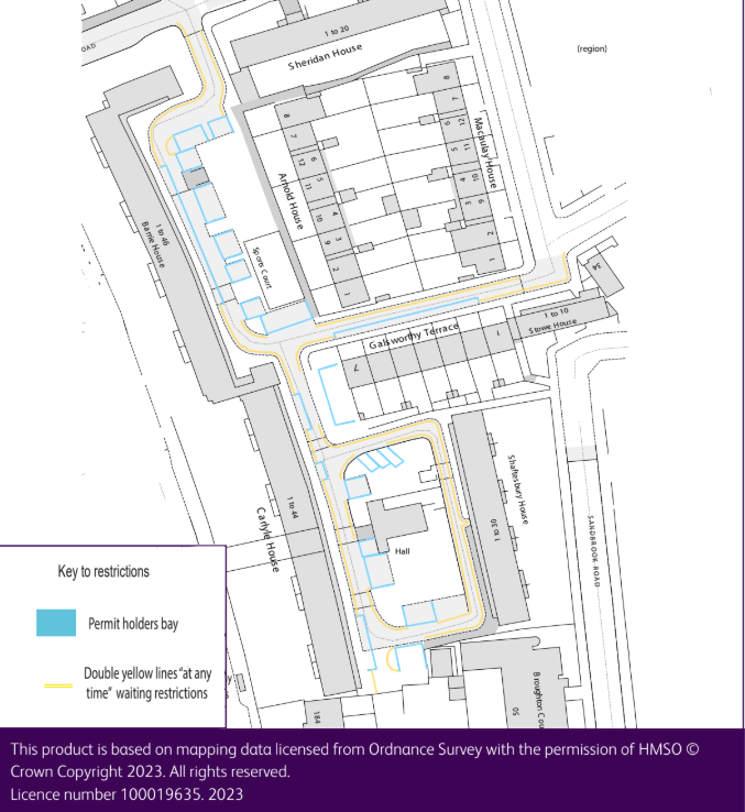 Hawksley Estate is situated within parking Zone M, but the estate itself is not subject to any formal parking controls. As residents of the estate frequently experience parking issues, we are now considering implementing parking controls, with the aim of improving parking for residents.