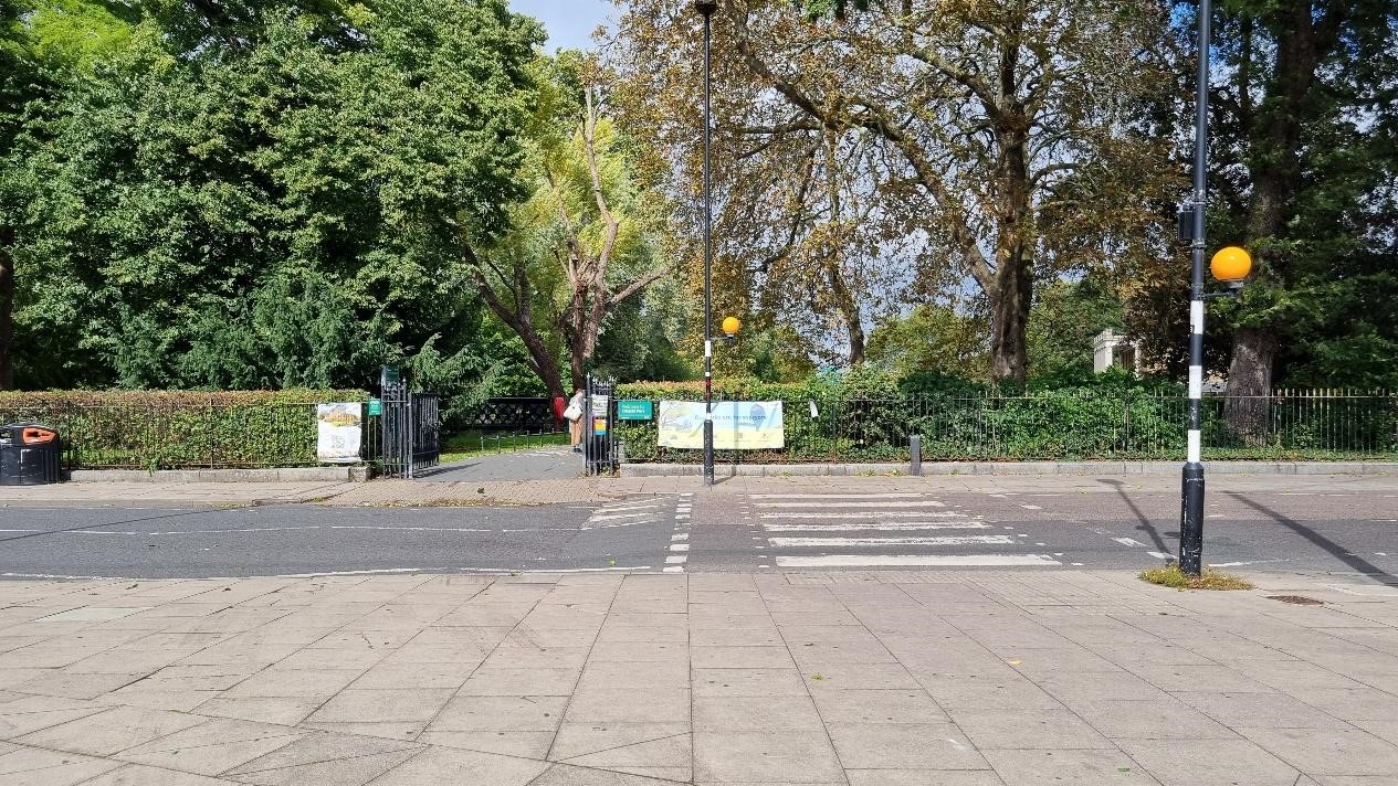 - Replacing the pedestrian zebra crossing with a parallel crossing for both pedestrians and cyclists at the park entrance, helping people move safely between Clissold Park and the surrounding streets. This would provide a clearer, more inclusive layout for all users.